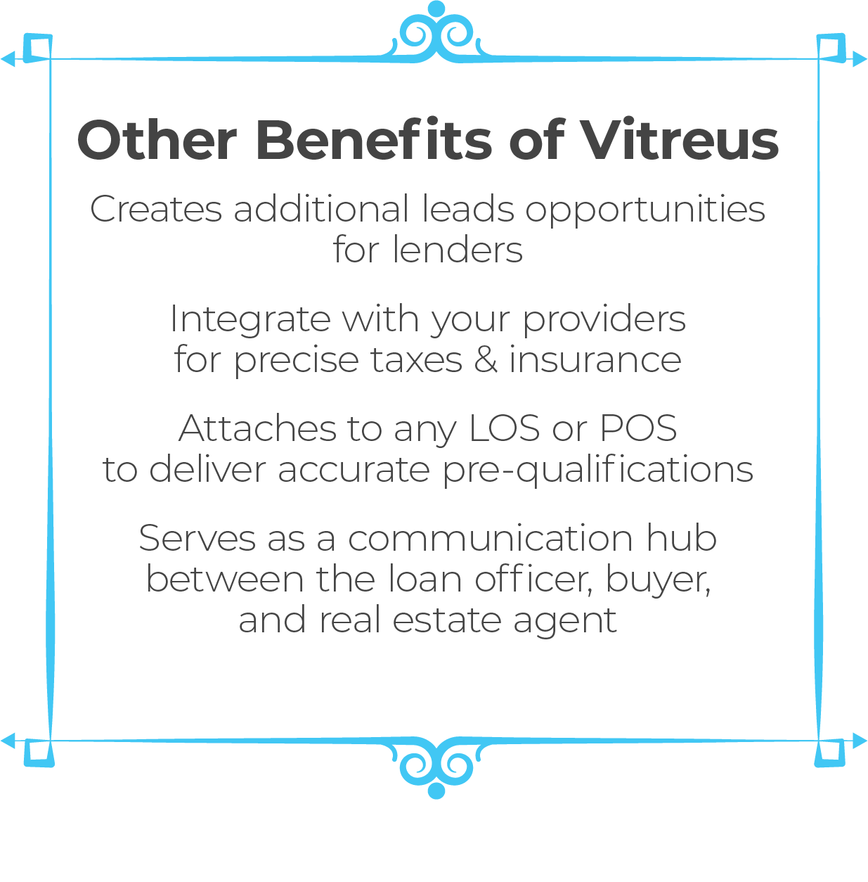 Vitreus pulls qualification data from your LOS or POS, and the lender completes setup including borrower, real estate agent, and additional access.